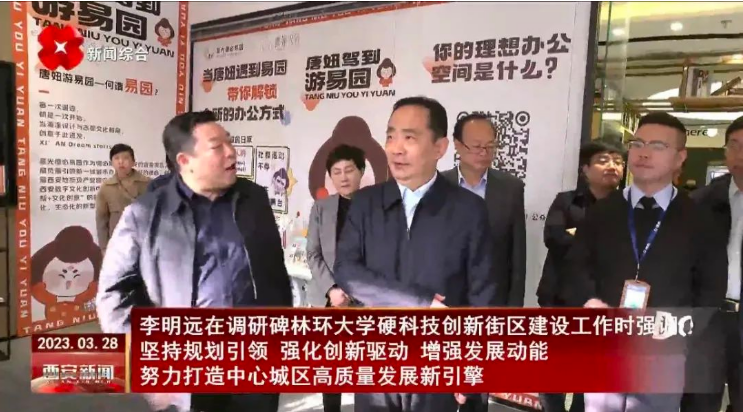3月28日,西安市委副書(shū)記、市長(zhǎng)李明遠(yuǎn)前往碑林區(qū)調(diào)研環(huán)大學(xué)硬科技創(chuàng)新街區(qū)建設(shè)有關(guān)工作,參觀并詳細(xì)了解星光德必易園運(yùn)營(yíng)模式和現(xiàn)況。