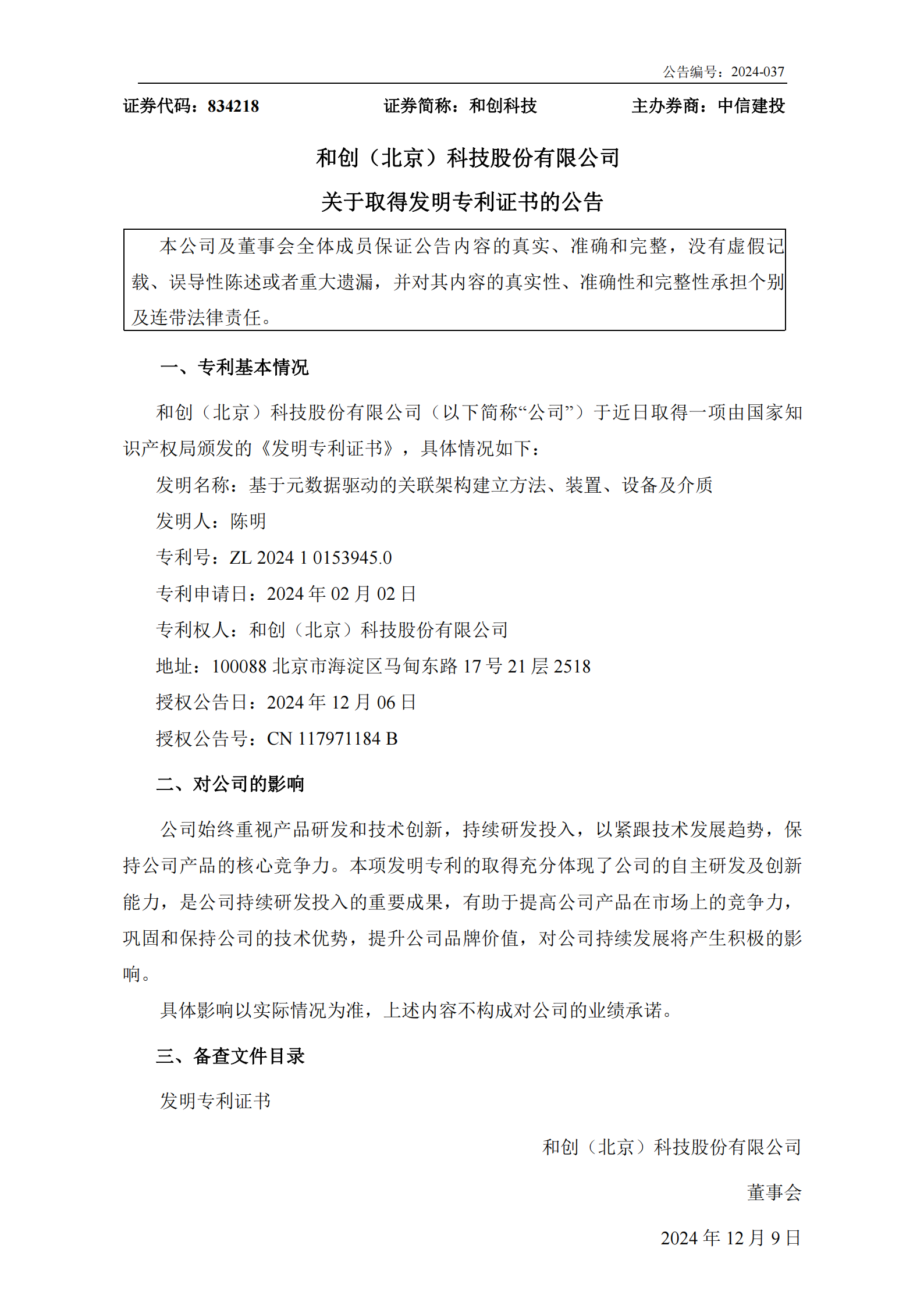 新專利的獲得是公司持續(xù)加大研發(fā)投入、注重技術(shù)創(chuàng)新結(jié)出的碩果。未來,和創(chuàng)科技將繼續(xù)秉承創(chuàng)新驅(qū)動發(fā)展的理念,不斷推出更多具有自主知識產(chǎn)權(quán)的核心技術(shù),為客戶創(chuàng)造更大價值,為社會進(jìn)步貢獻(xiàn)更多力量。