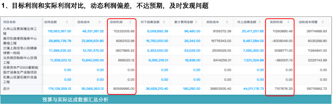目前項(xiàng)目利潤(rùn)較穩(wěn)定,但是有些項(xiàng)目管不好還是會(huì)有一些虧損。公司在投標(biāo)之前就會(huì)做預(yù)算,但是在施工過(guò)程中如果管控不到位,就不知道虧錢(qián)到底虧在哪里,賺錢(qián)賺在哪里,只能項(xiàng)目結(jié)束了才知道賺還是虧。