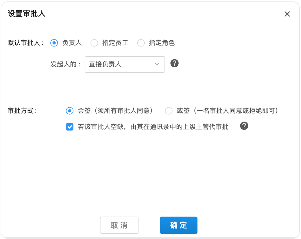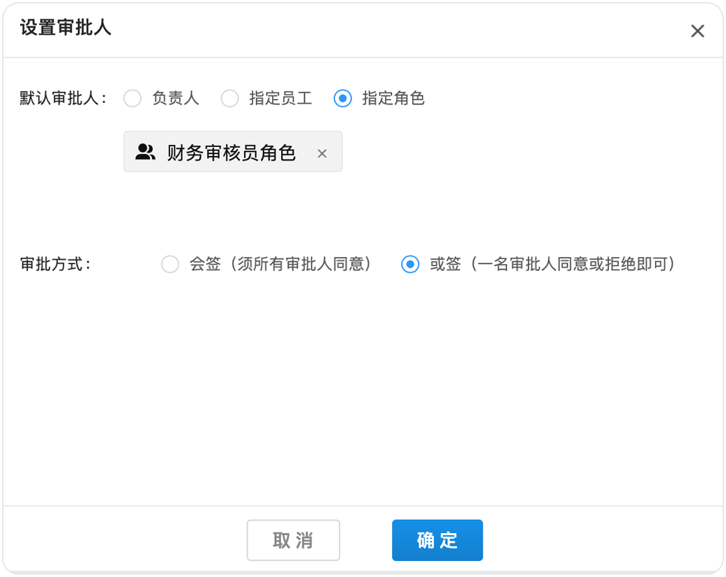 如果小王的公司對報(bào)銷把控比較嚴(yán)格,要求兩個財(cái)務(wù)審核同事全部同意后流程才能通過,那么可以在后臺將他們設(shè)置成“多人會簽”。