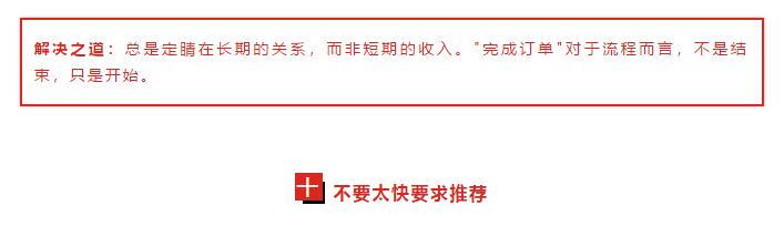 在你完成這個訂單之后,真正的工作才開始,因?yàn)槟汩_始建立某種關(guān)系,以致于你可以產(chǎn)生后續(xù)業(yè)務(wù),以及推薦銷售,而這兩者比贏得新業(yè)務(wù)更容易,也更有利潤。