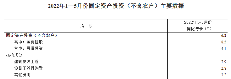 國(guó)家統(tǒng)計(jì)局:1-5月基礎(chǔ)設(shè)施投資同比增長(zhǎng)6.7%