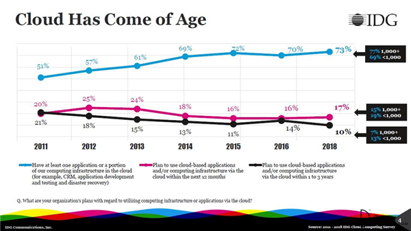 IDG?2018年企業(yè)云研究報(bào)告,73%的企業(yè)“處于云中”