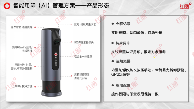 為解決上述痛點,紅圈構建了“AI智能核驗、全流程數(shù)字化、智能硬件保障、全場景覆蓋”四位一體的全方位用印風控體系。
