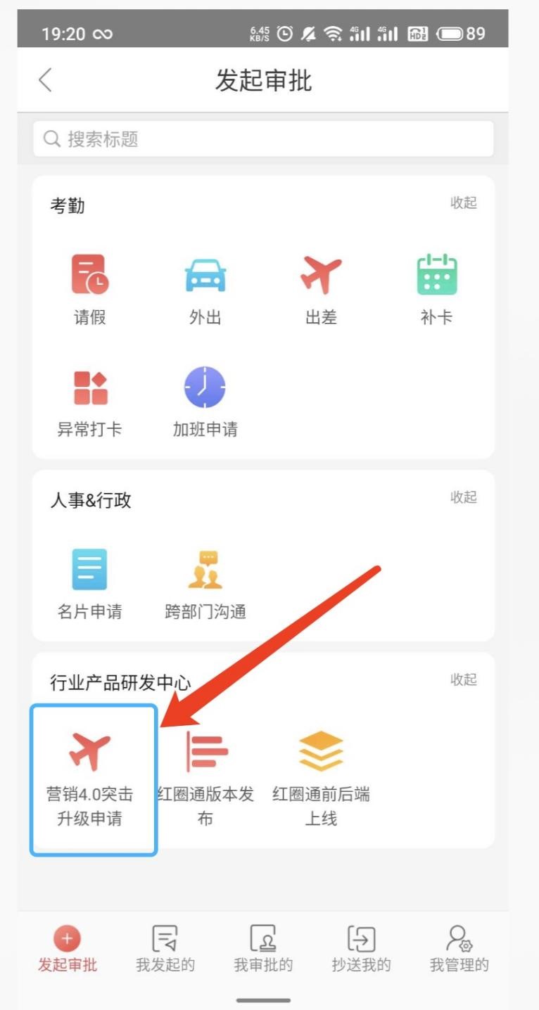 發(fā)起方式:紅圈通高級(jí)審批-------營(yíng)銷4.0突擊升級(jí)申請(qǐng)模板