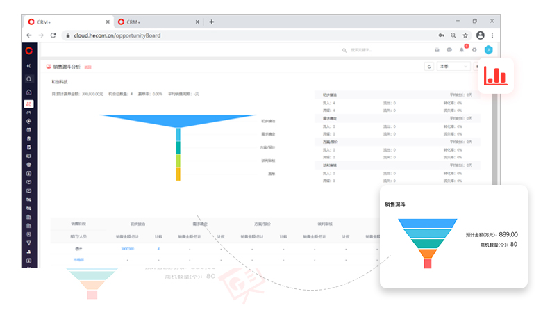 通過銷售漏斗實時監(jiān)控銷售進展,準確預測銷售產(chǎn)出